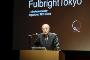 今回は“Connect the World”をテーマに、日米の若手フルブライト留学経験者やフルブライトの大先輩である明石康・元国連事務次長、榊原英資・青山学院大学特別招聘教授(元大蔵省財務官)など合わせて8名のスピーカーが交代で登壇し、それぞれの仕事や研究、留学、人生体験に基づく意見や主張を10数分ずつ語りました。