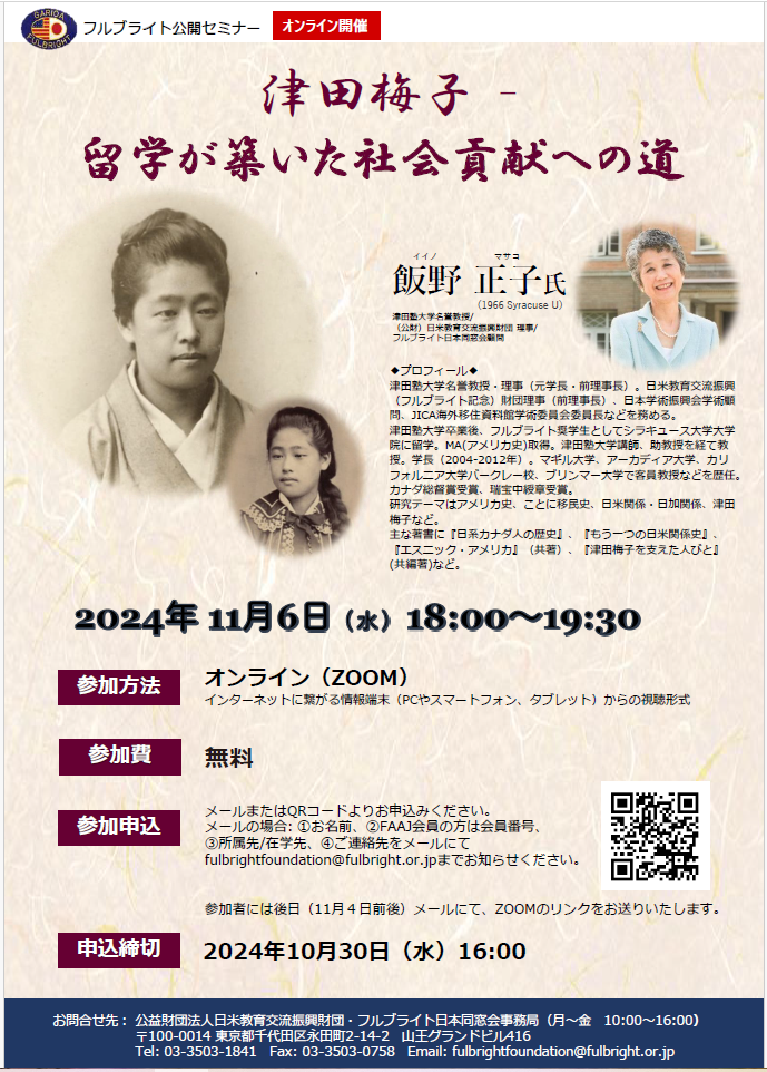 2024年11月6日(水)オンライン・フルブライト公開セミナーを開催しました。